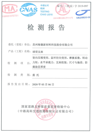 與國內(nèi)外多家權(quán)威機(jī)構(gòu)合作, 對(duì)產(chǎn)品進(jìn)行第三方檢測。例如同濟(jì)大學(xué)、東南大學(xué)、華中科技大學(xué)、廣州大學(xué)、交通部公路工程檢測中心、交通部交通工程檢測中心、石油和化學(xué)工業(yè)橡塑與化學(xué)品質(zhì)量監(jiān)督檢驗(yàn)中心(北京)、鐵道部產(chǎn)品質(zhì)量監(jiān)督檢驗(yàn)中心、國家道路及橋梁質(zhì)量監(jiān)督檢驗(yàn)中心、北京中交工程技術(shù)有限公司、SGS、DNV GL......