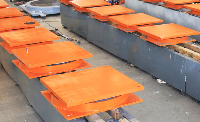 目前擁有6000噸平板硫化機(jī), 能加工直徑2500mm的隔震支座; 以及3600噸平板硫化機(jī), 能加工直徑2000mm的隔震支座。且采用先進(jìn)的導(dǎo)熱油及電加熱溫控系統(tǒng),精度更高,使產(chǎn)品使用壽命提升10年以上。